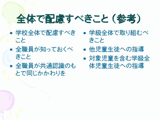 それから「学級全体で取り組むべきこと」は、他の児童生徒へどう指導するかということです。